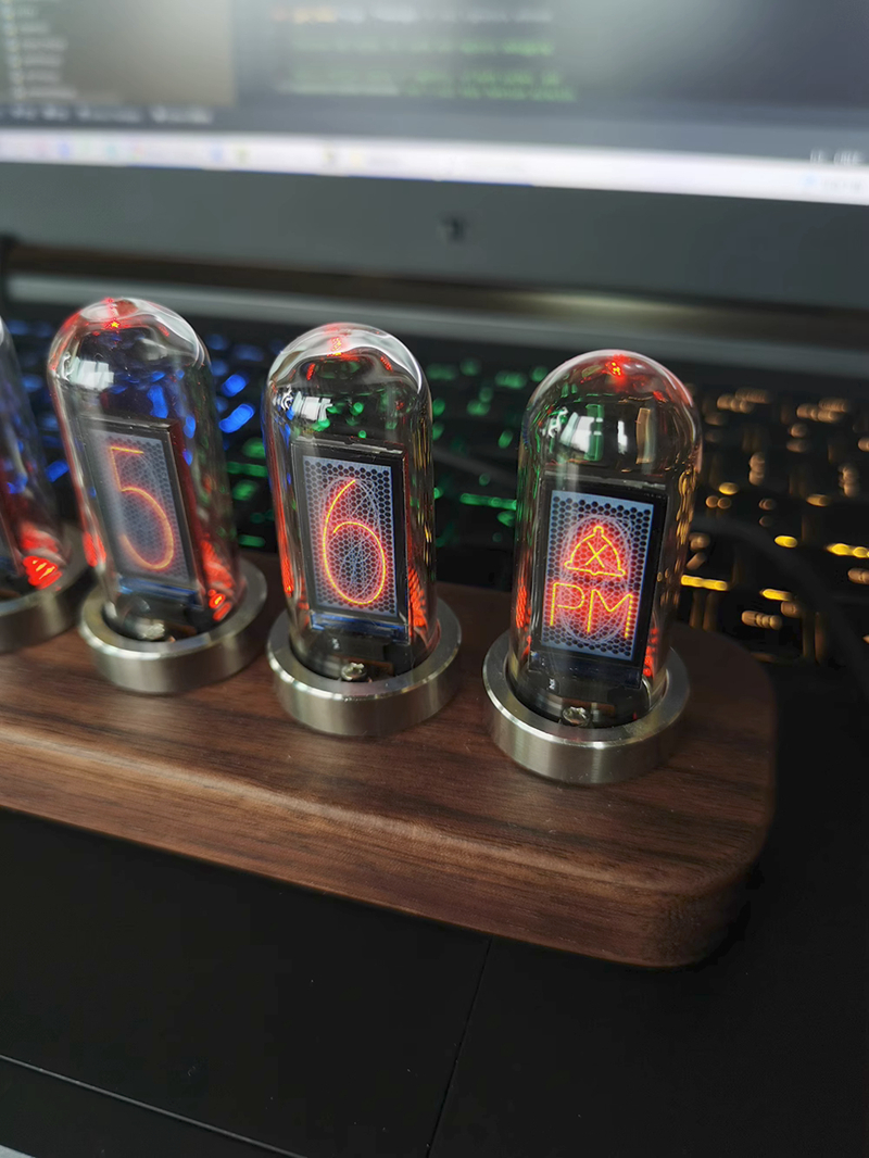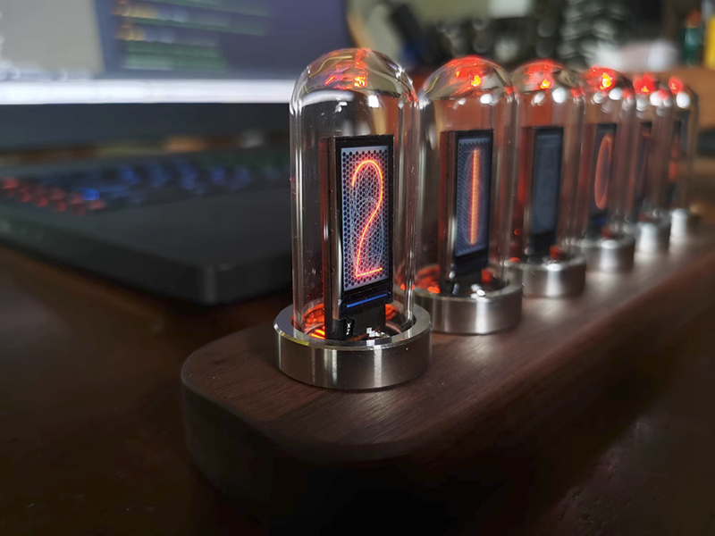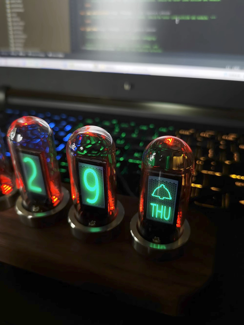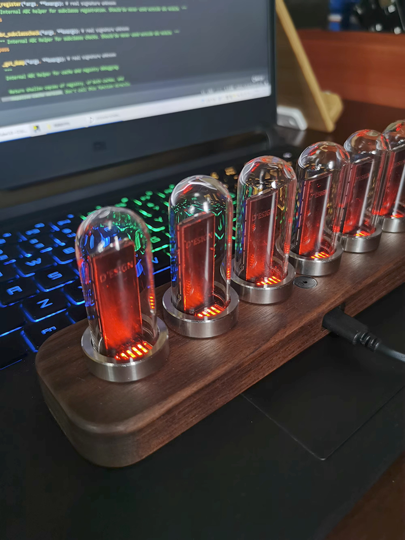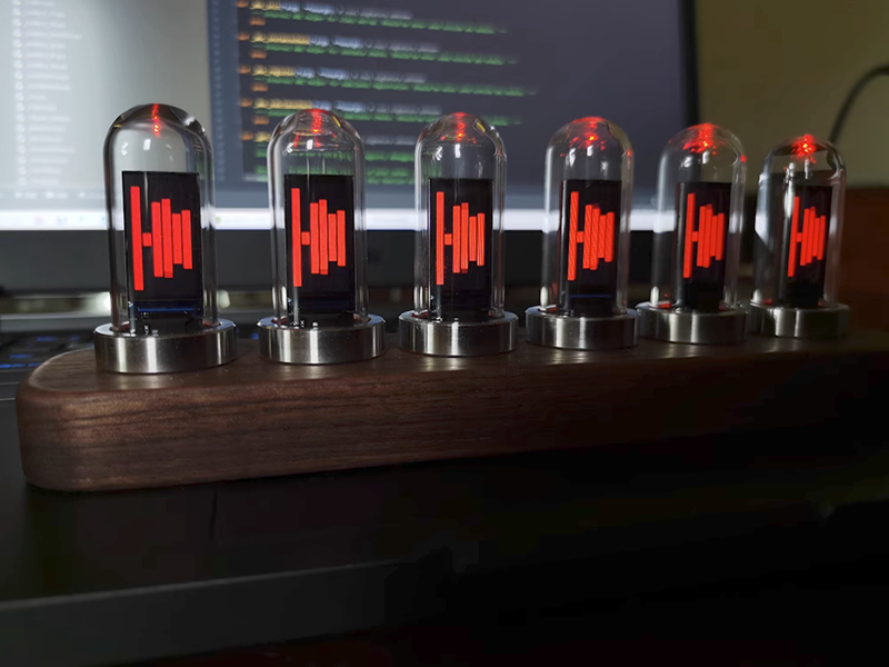 D'ESIGN IPS RGB LED Music Spectrum Pseudo Glow Tube Rhythm Light Alarm Clock with Black Walnut Base