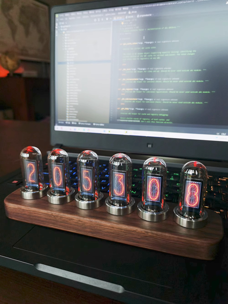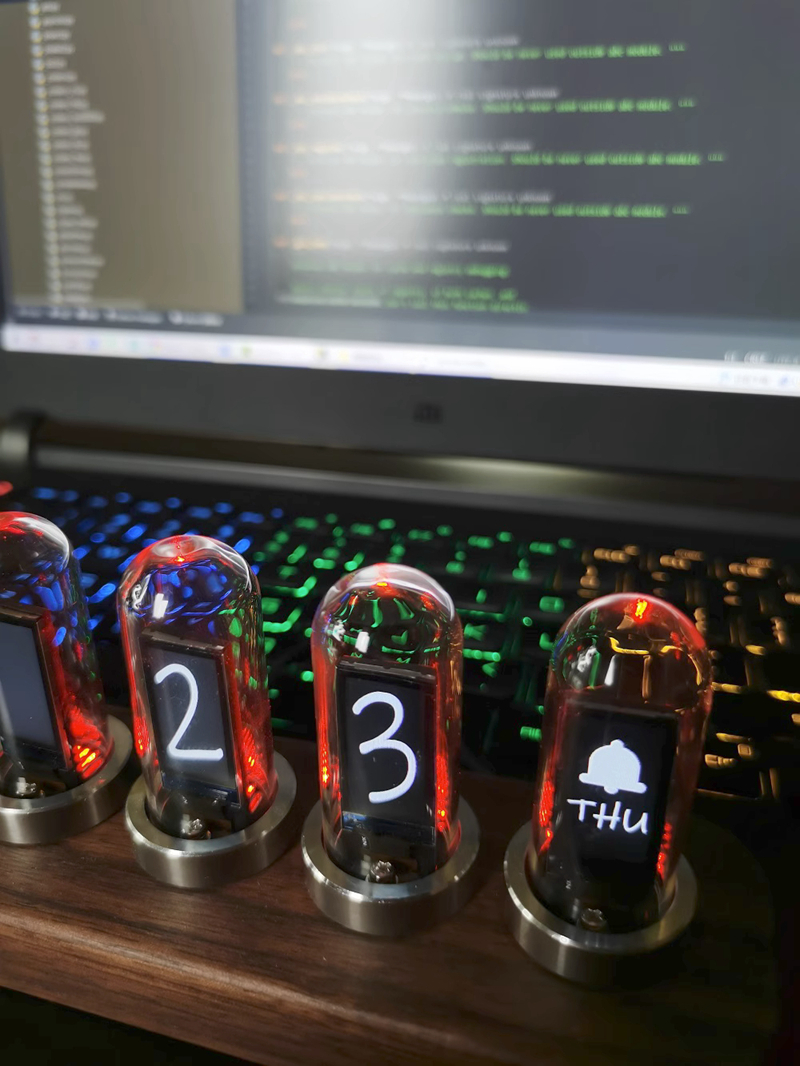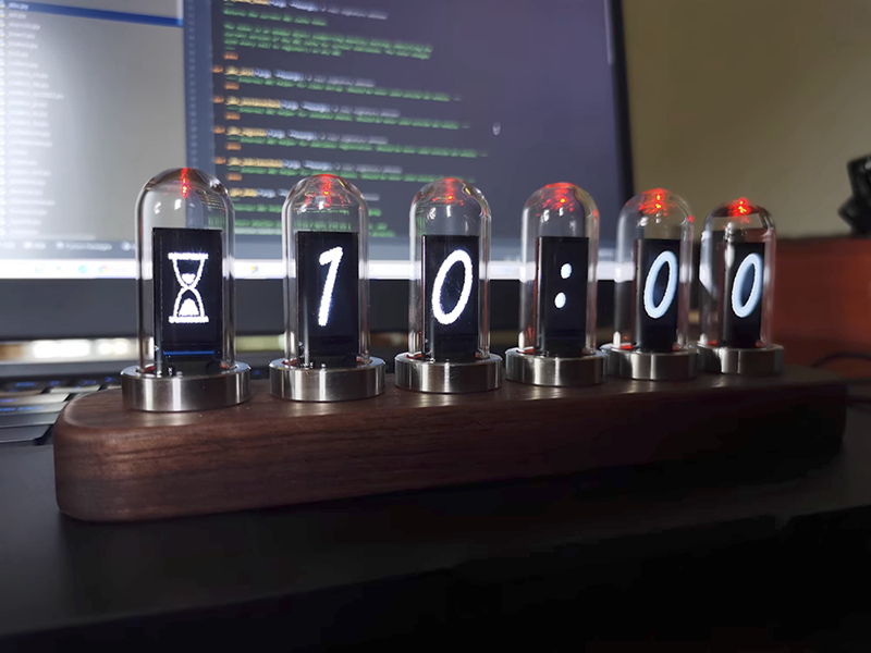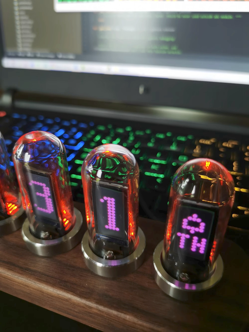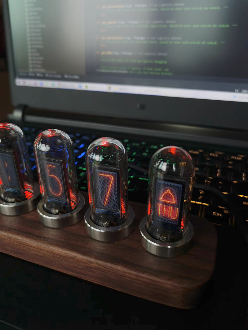 D'ESIGN IPS RGB LED Music Spectrum Pseudo Glow Tube Rhythm Light Alarm Clock with Black Walnut Base