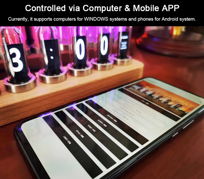 D'ESIGN IPS RGB LED Music Spectrum Pseudo Glow Tube Rhythm Light Punk Alarm Clock with Beech Base