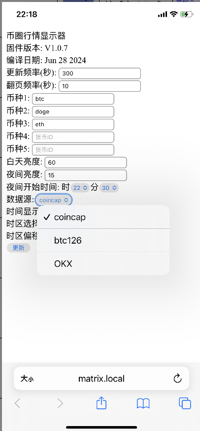 It is a digital currency market display. It can only display the real-time price of digital currencies. It can be used as an ESP8266 WS2812B pixel screen. Data is from Coin CAP. You can set the refresh rate. It supports major currencies. You can add 5 digital currencies at a time to play them in turn. It can also display the date and time as well as the world time. It has time zones to choose from.