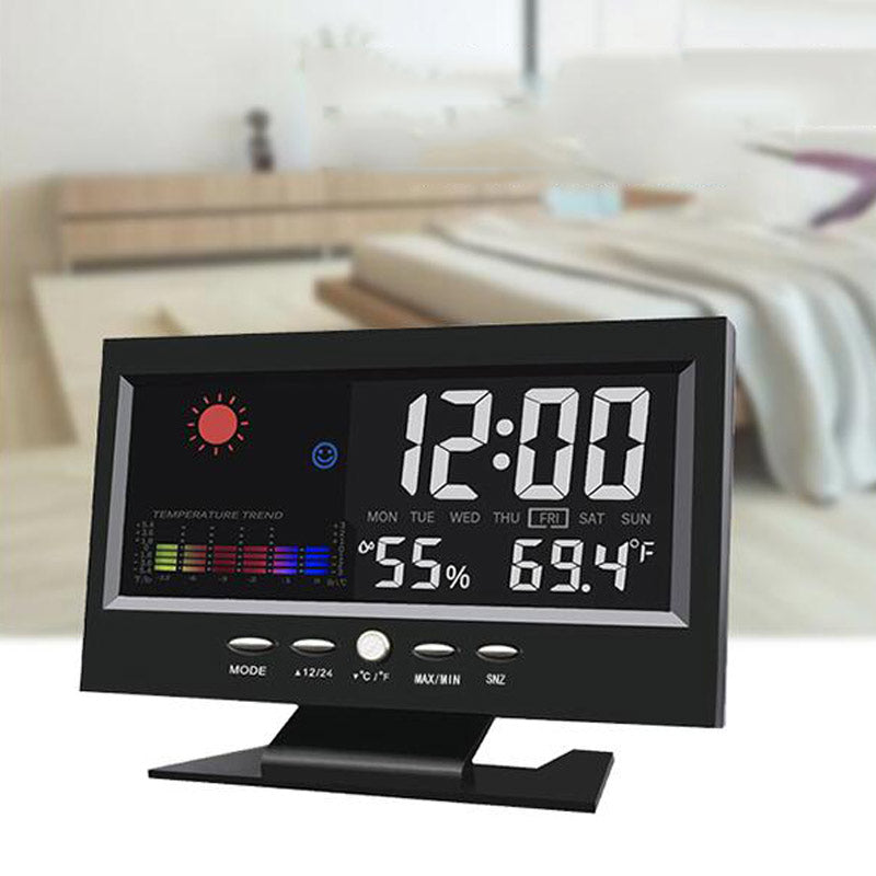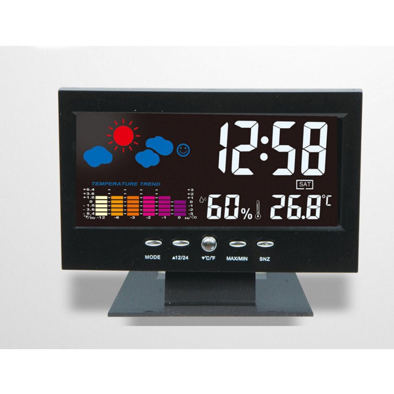 - With alarm, snooze function, weather, comfort level, temperature trend indication, really practical.