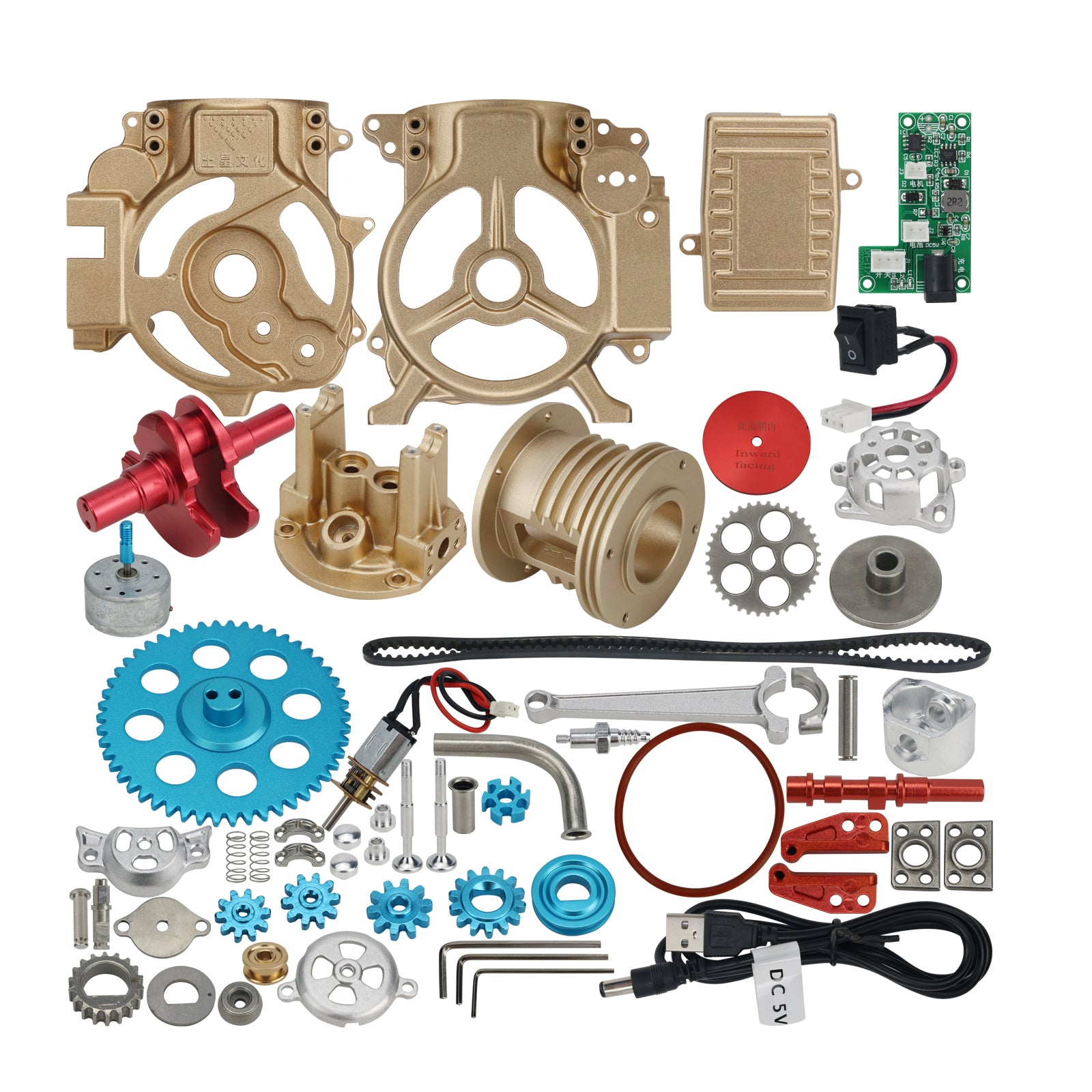 This single cylinder engine is designed based on internal combustion engine, but work with electric motor instead of gasoline. The engine comes with kit (more than 130pcs) with a metal box. People have to assemble the part. The whole process is close to the professional assembly line process. You can learn how engine works clearly. Most of our customer are from school or training institution or family. It is very interesting and full of challenge.