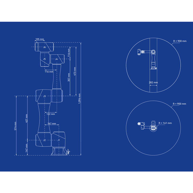 The CR5 has a repeatability of ±0.02 mm and 5 levels of adjustable collision detection settings. Use the intelligent interaction panel for drag to teach functionality. Have the robot perform inspection, assembly, screw-driving, bin picking and loading and unloading tasks to meet the needs of consumer electronics, semiconductor, food and beverage, metal processing and healthcare industries.
