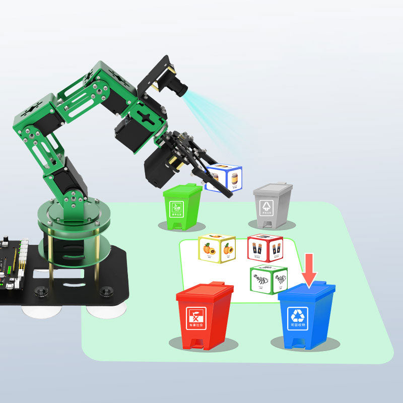 - DOFBOT AI Vision Robotic Arm: Artificial Intelligence, the unity of hand and eye. Artificial intelligence, eyes follow hands. Movement tracking, visual recognition. Model training, garbage sorting.