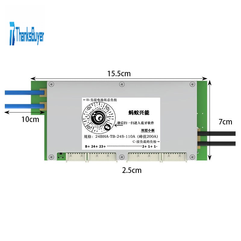 Double-layered 10-24S 110A (Peak 200A) BMS Lithium Battery Protection Board with 3.8" LCD Screen