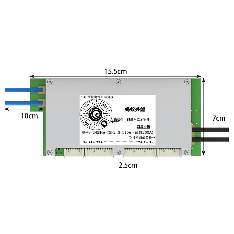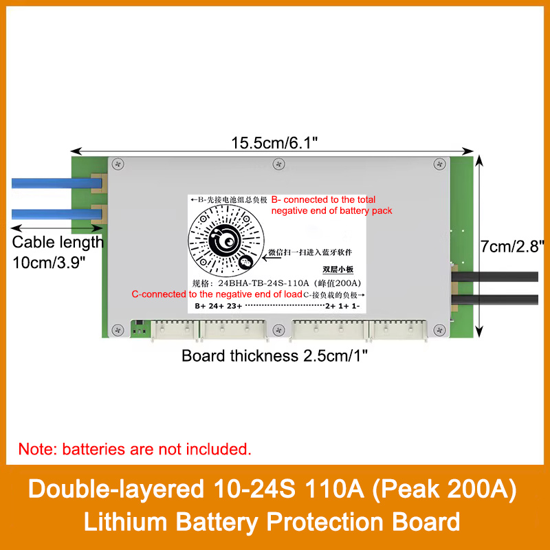 Double-layered 10-24S 110A (Peak 200A) BMS Lithium Battery Protection Board without LCD Screen