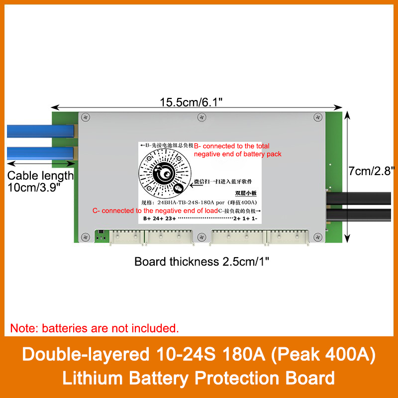 Double-layered 10-24S 180A (Peak 400A) BMS Lithium Battery Protection Board with 3.8" LCD Display