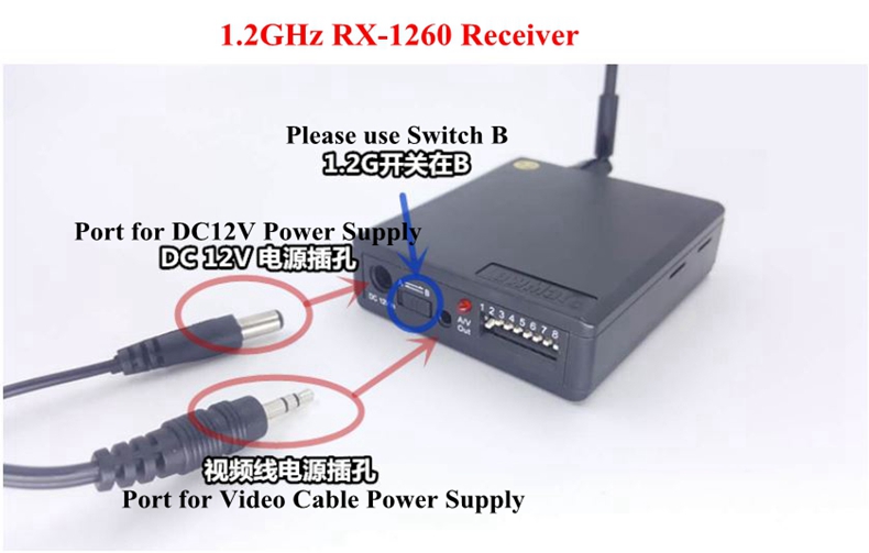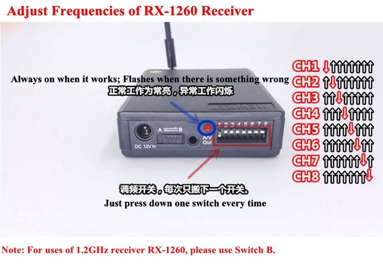 Note: For uses of 1.2GHz receiver RX-1260, please use Switch B.