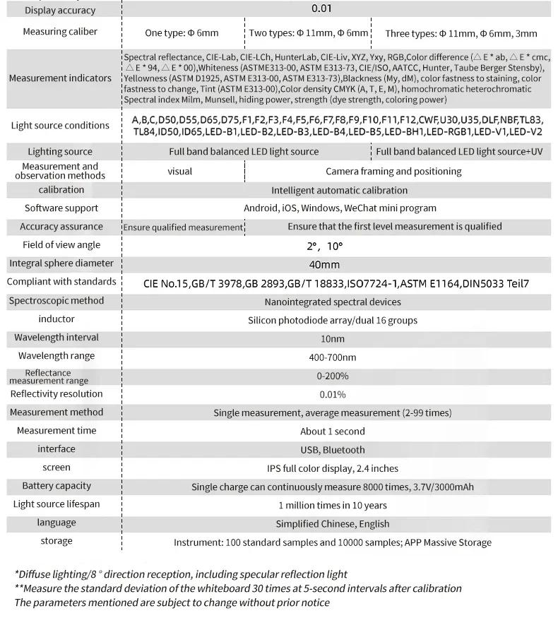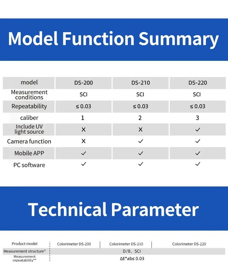DS-210 Portable Colorimeter with 6mm+11mm Calibers High Precision Professional Color Difference Meter