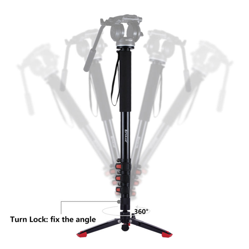 3. 360-degree rotating support stand base legs of the monopod allows for free panning and tilting adjustment during video or micro film shooting.