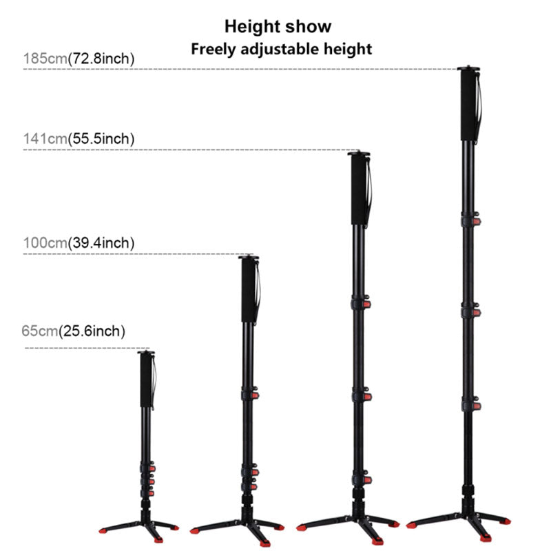 2. Four-section leg with flip locks, allows you to adjust the height of the monopod from 65cm (25.6 inch) to 185cm (72.8 inch).