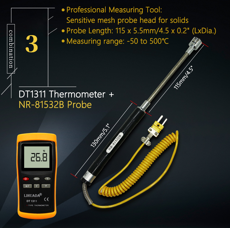 DT1311 K Type Thermometer Single-Channel Thermocouple Thermometer + NR-81532B Probe (-50 To 500℃)