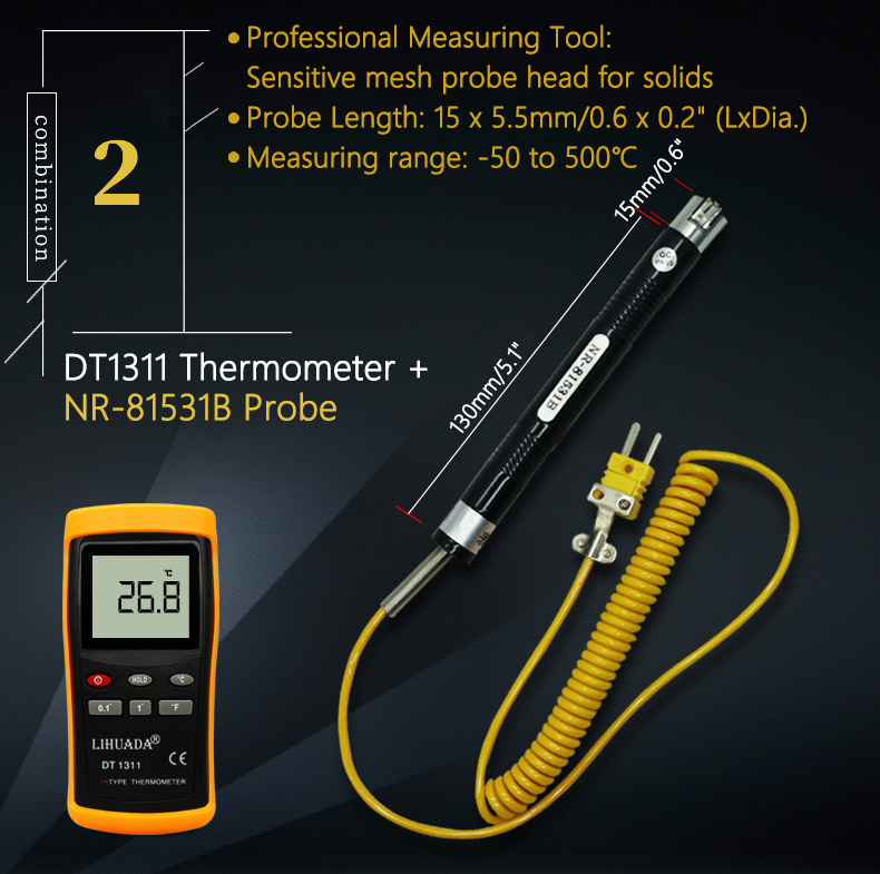 DT1311 K Type Thermometer Single-Channel Thermocouple Thermometer With NR-81531B Probe (-50 To 500℃)