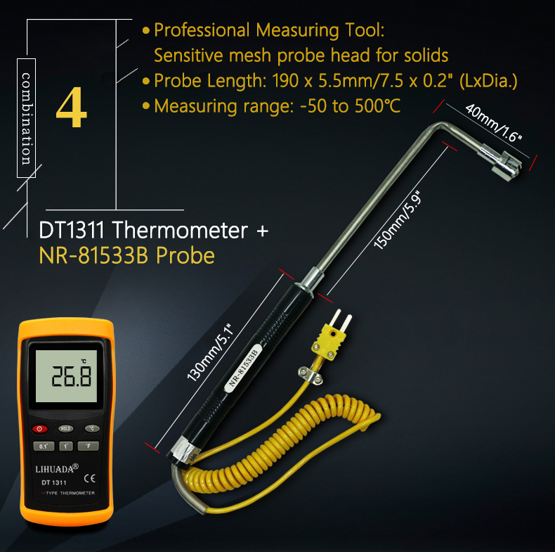 DT1311 K Type Thermometer Single-Channel Thermocouple Thermometer With NR-81533B Probe (-50 To 500℃)
