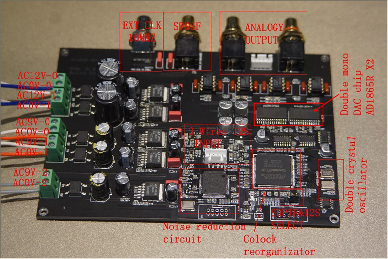Dual AD1865Rs form a mono architecture. Direct current output cooperates with external IV circuit and lpf circuit, with precise noise cutoff technology to limit out-of-band noise, and has a very dark sound background.