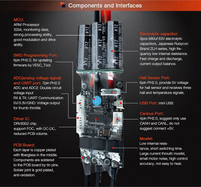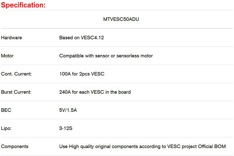 Electric Skateboard VESC Dual VESC 50A VESC4.12 Based Controller For Esk8 Ebike VESCtool MTVESC50ADU