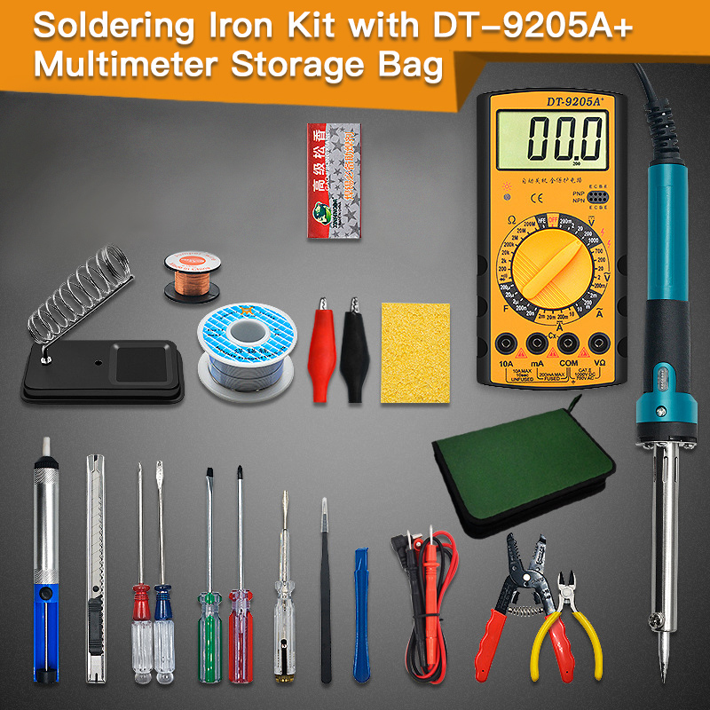 Electric Soldering Iron Kit w/ Soldering Iron with Light DT-9205A+ Multimeter Storage Bag Version