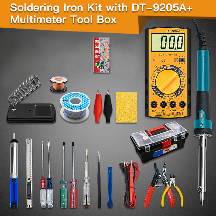 Electric Soldering Iron Kit w/ Soldering Iron with Light DT-9205A+ Multimeter Tool Box Version