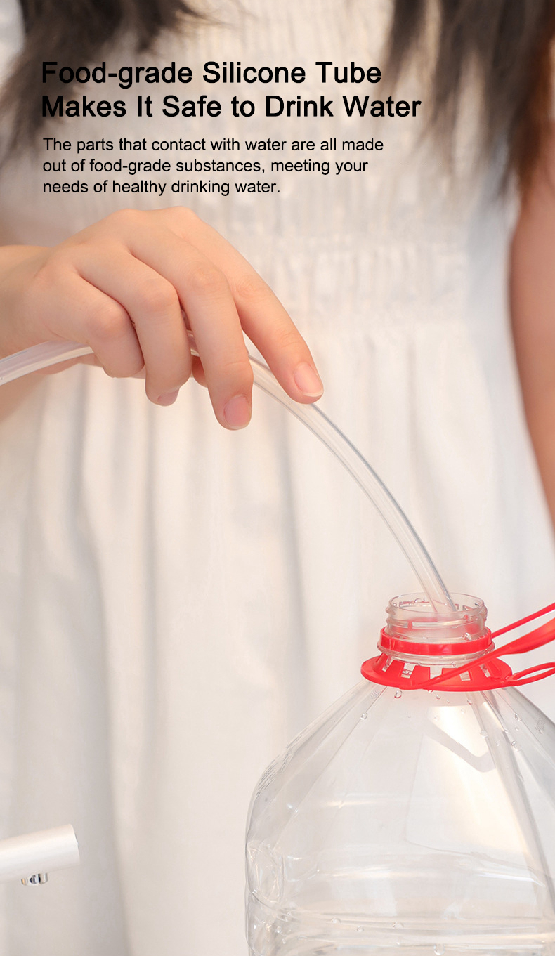 - User-friendly Material: Safe to drink water because its soft water tube is made of food-grade silicone. The parts that contact with water are all made out of food-grade substances, meeting your needs of healthy drinking water.