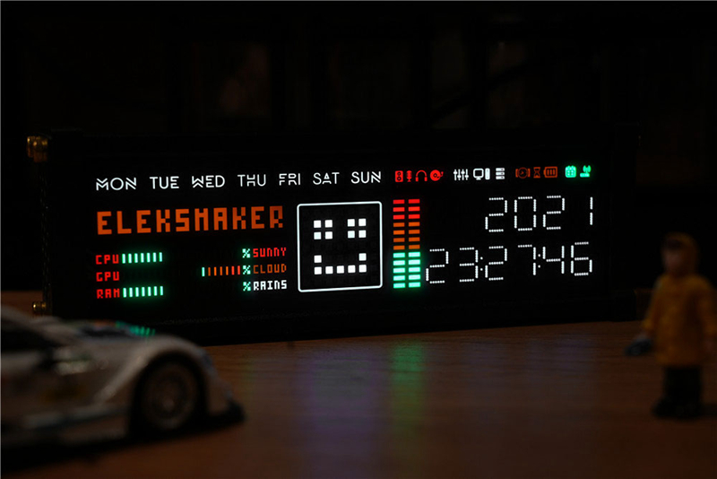 EleksMaker EleksWFD Retro Electronic Clock Pseudo-Fluorescent Tube Clock Dot Matrix Cyberpunk Gift