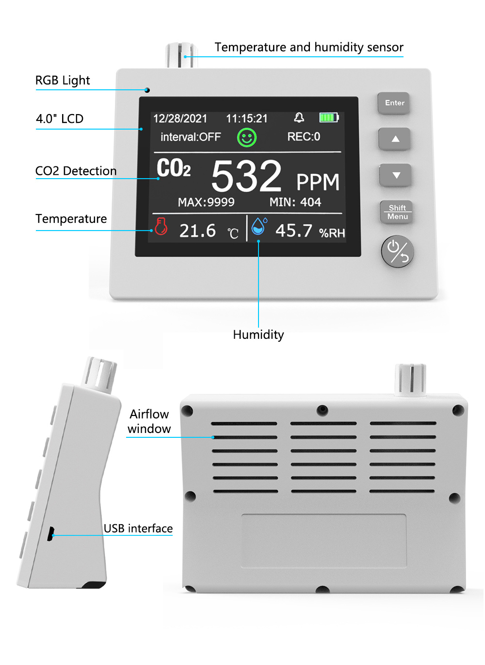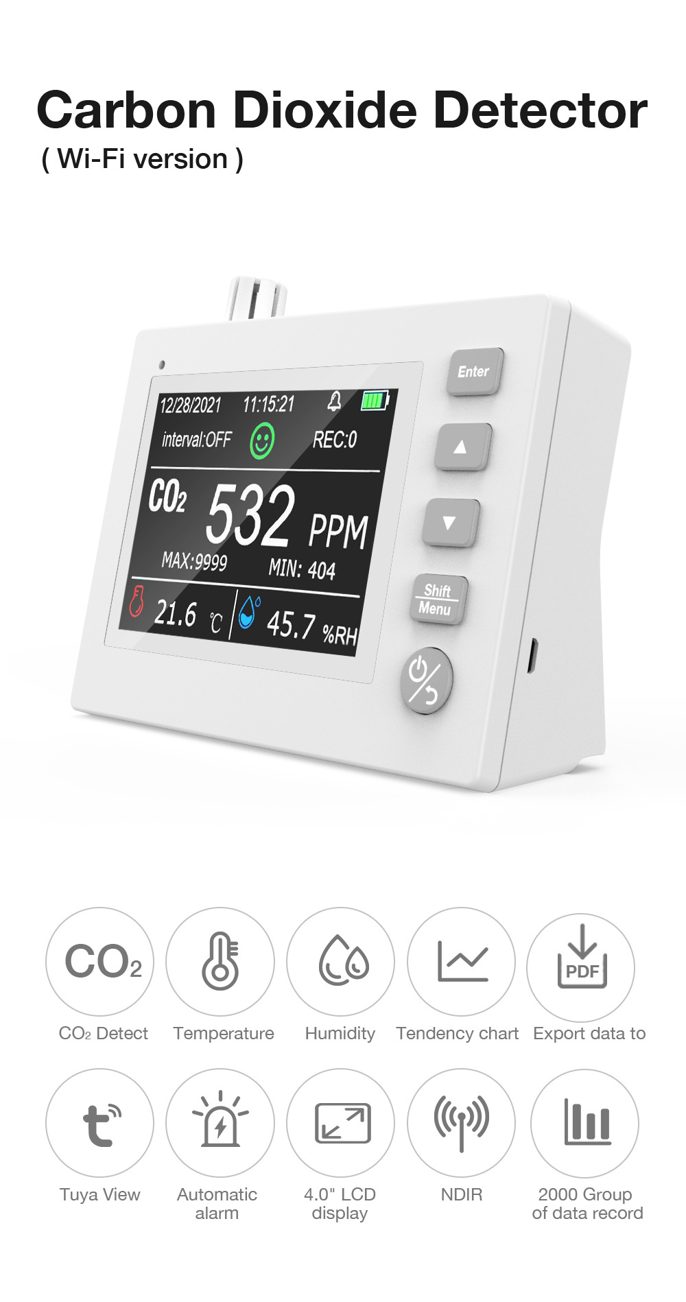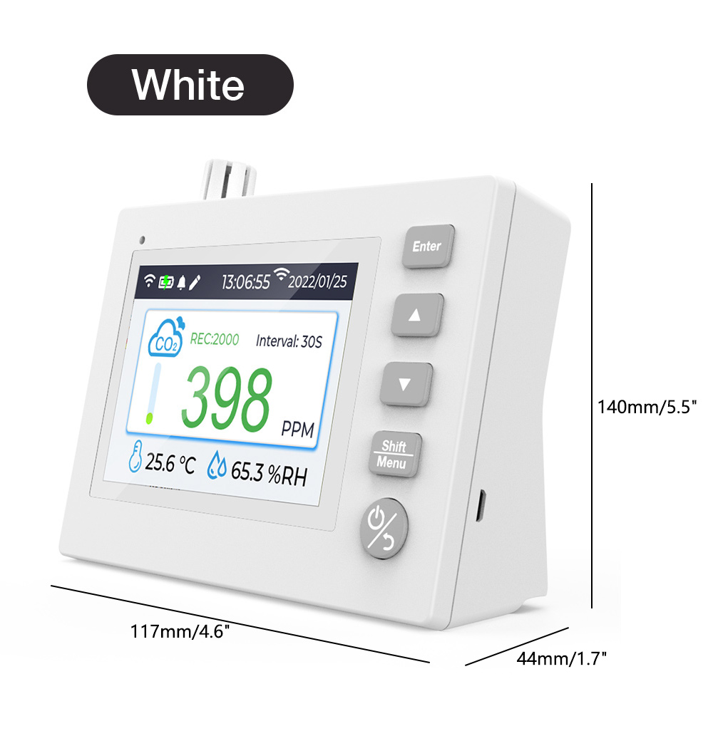 EM004 White Wifi Carbon Dioxide Detector CO2 Detector Temperature Humidity Monitor with 4.0" LCD