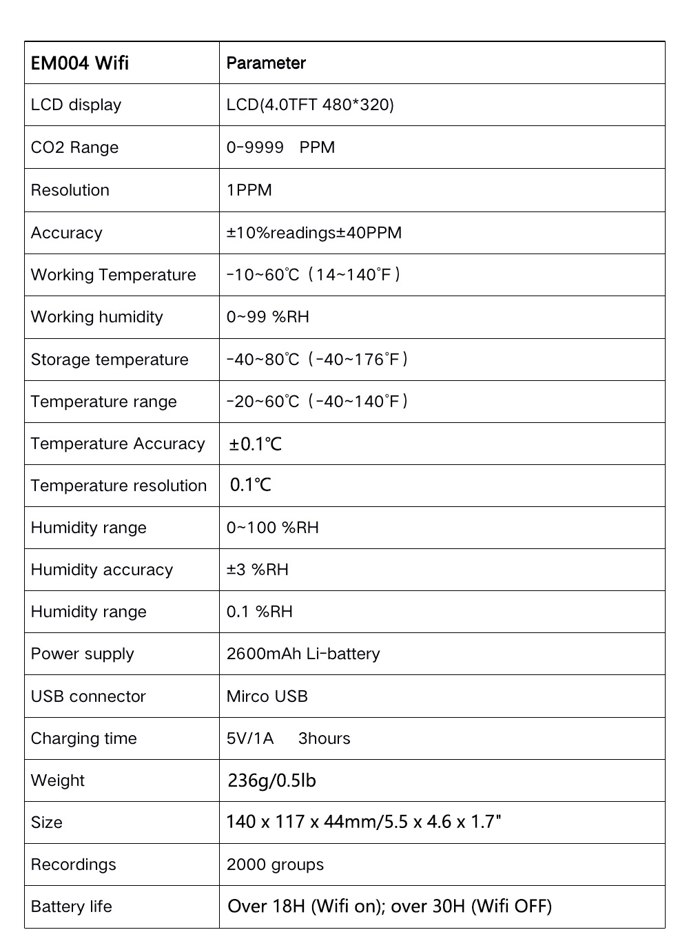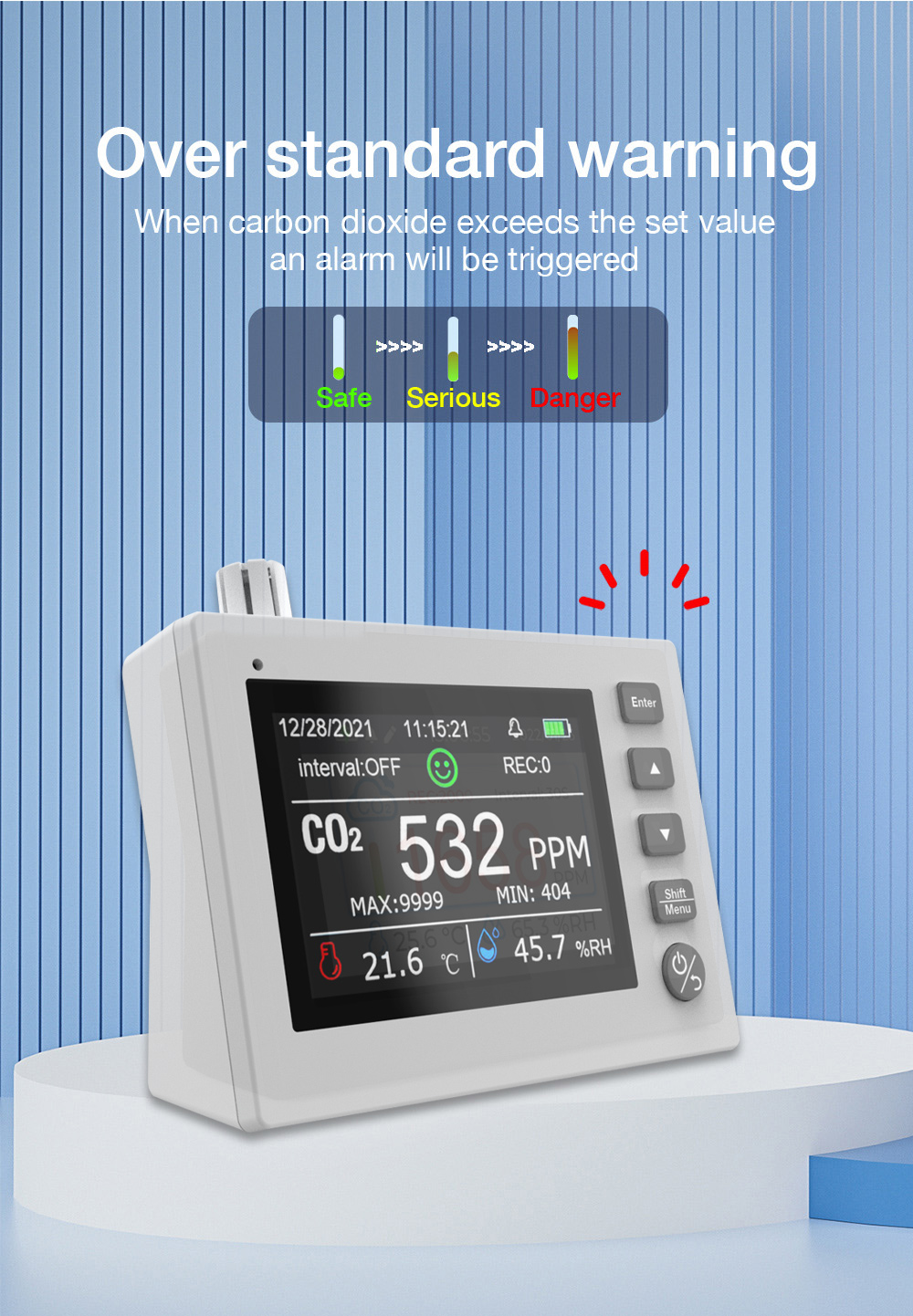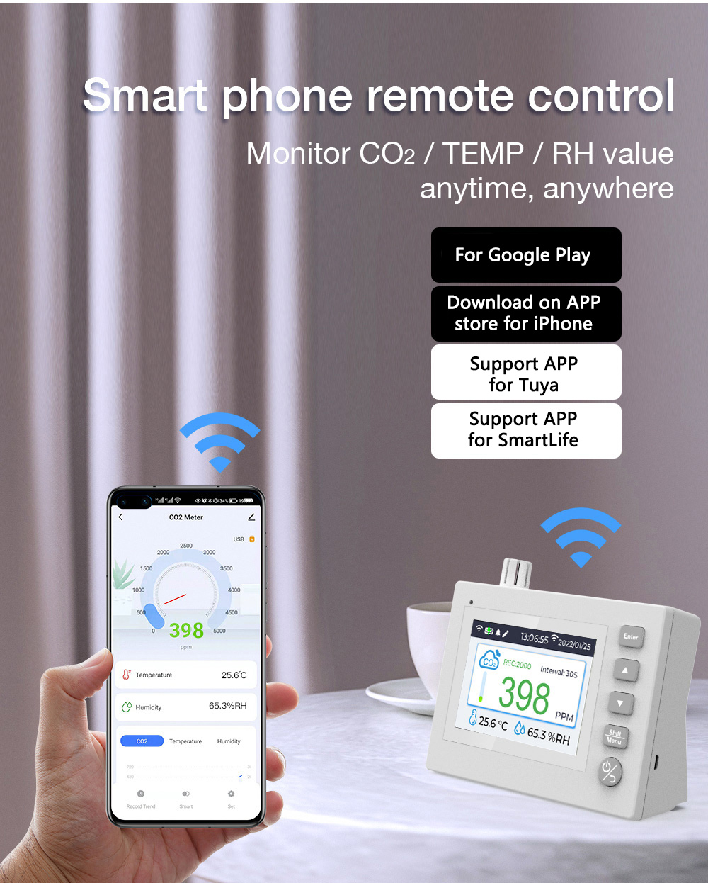EM004 White Wifi Carbon Dioxide Detector CO2 Detector Temperature Humidity Monitor with 4.0" LCD
