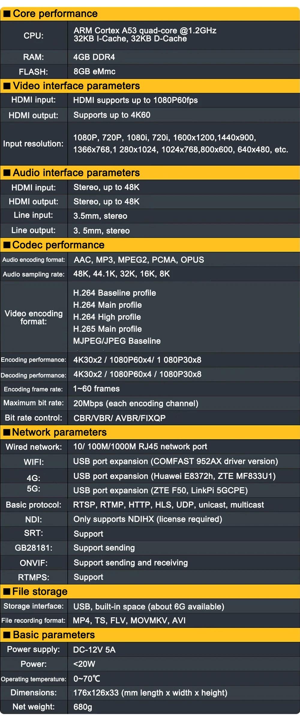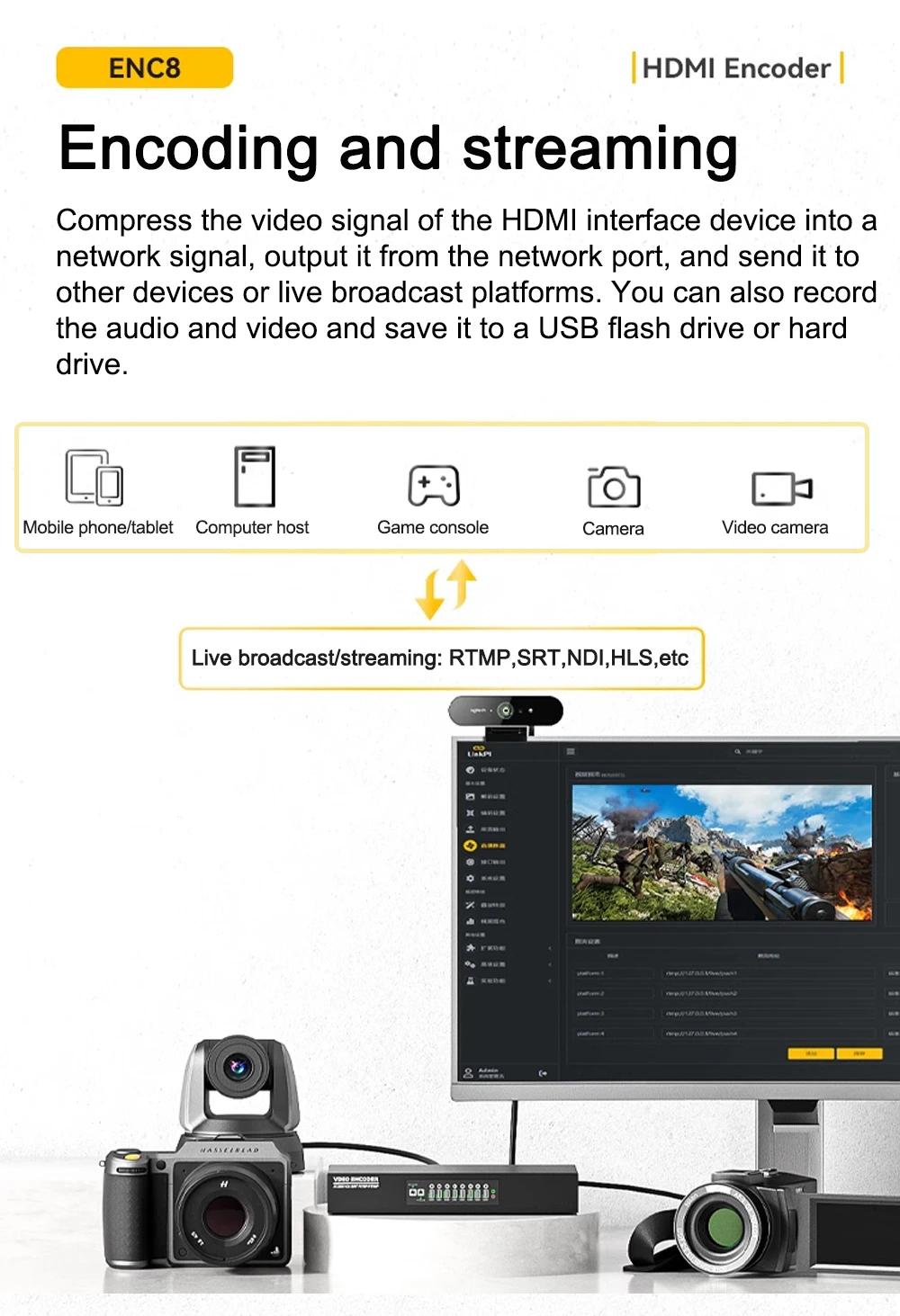 ENC8 HDMI-compatible Encoder 4K Decoder 1080P60 Low Latency Video Codec Support for SRT NDI H.265