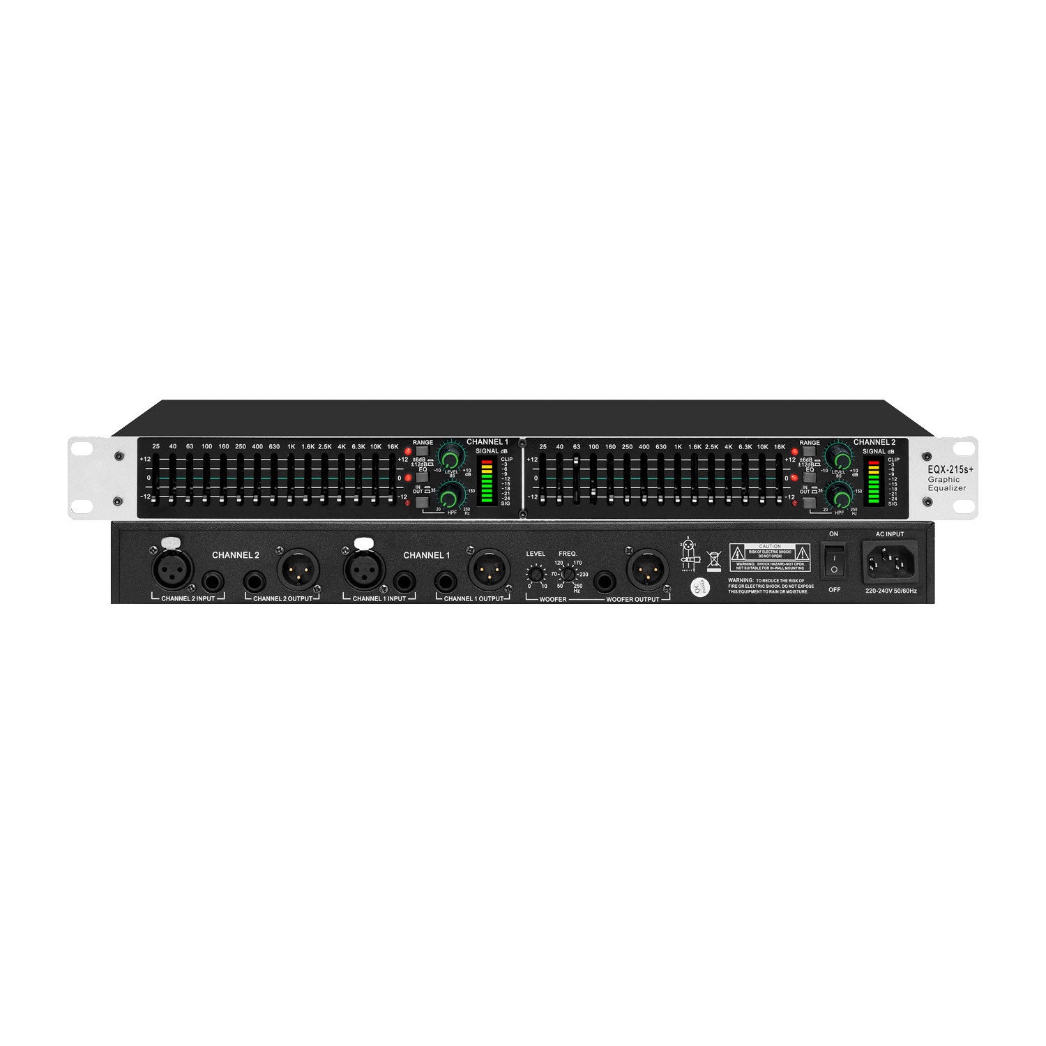 * EQX-215+ is a dual-channel 15-band equalizer.