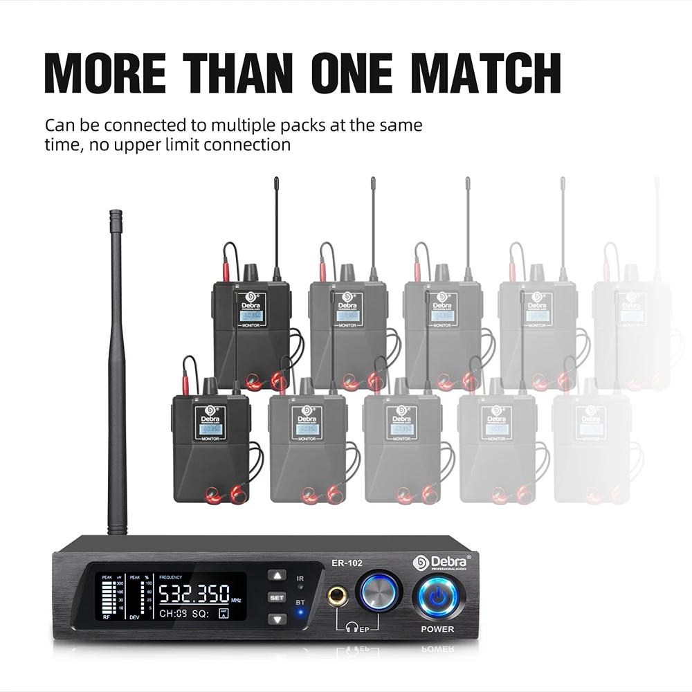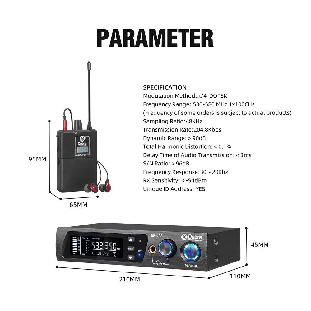 ER-102 Professional Wireless IEM System Bluetooth5.0 UHF 510MHz-580MHz In Ear Monitoring System with 1 Receiver