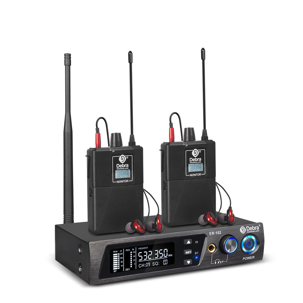 ER-102 Professional Wireless IEM System Bluetooth5.0 UHF 510MHz-580MHz In Ear Monitoring System with 2 Receiver