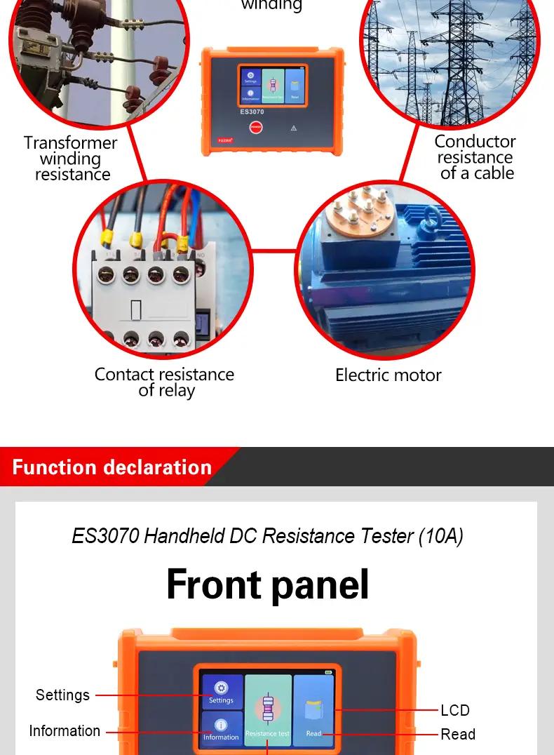 ES3070 10A 10uohm-50Kohm Portable Handheld Transformer DC Resistance Tester Fast Grounding Conductivity Tester
