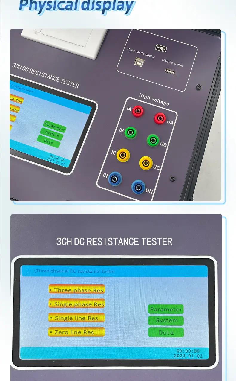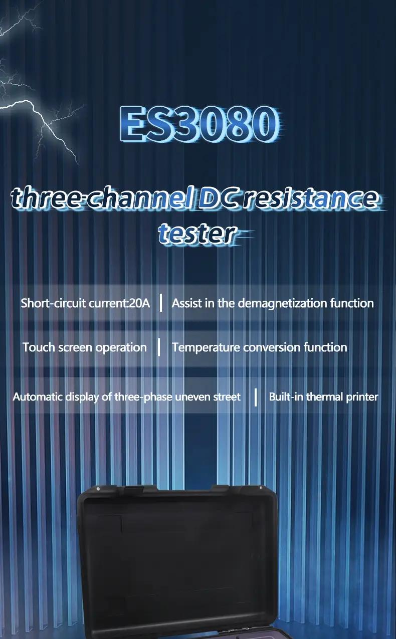 - ES3080 DC resistance tester, also known as transformer DC resistance tester, is an important instrument to check whether the connection or mechanical characteristics between windings, windings and leads are good, and whether the resistance between each phase winding is balanced, so as to ensure the safe operation of the transformer.