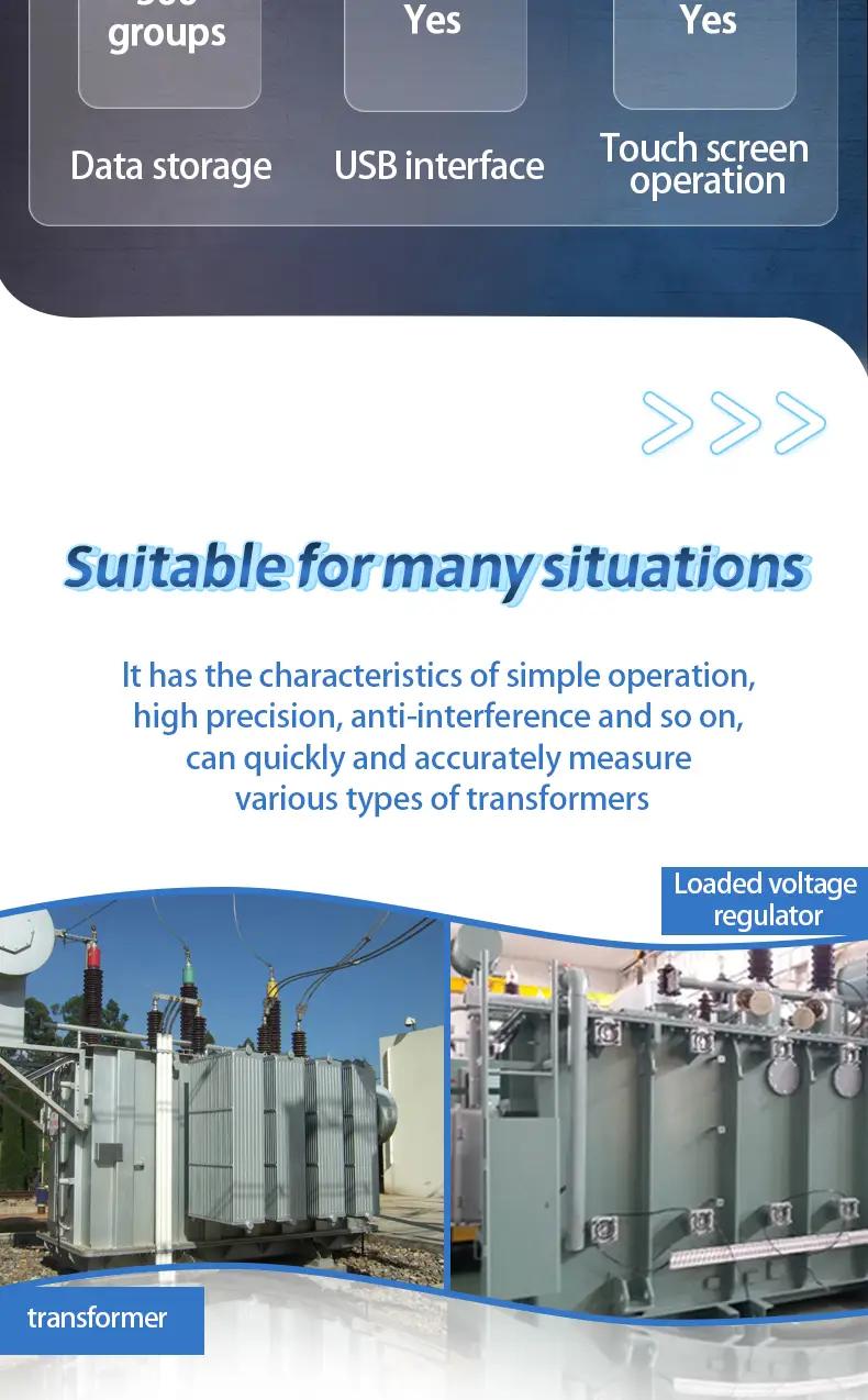 - Transformer DC resistance tester is a new type of instrument suitable for measuring the DC resistance of large-capacity transformer. It is designed as a high-precision current-stabilized power supply and test module. During the test process, it is controlled by a computer and automatically completes the steady state judgment, data acquisition, data processing and resistance measurement. Value display and printing. This instrument can be used for longitudinal test of on-load voltage regulator with secondary power supply, which completely saves test time. It also has the temperature rise test function of the transformer manufacturer. It has the characteristics of simple operation, high accuracy and anti-interference, and can measure various types of transformers quickly and accurately. The magnetic aid method is to charge the low winding by generating a magnetic field for the output current of the high winding. With the help of the excitation ampere turns of the high voltage winding, the winding inductance is greatly reduced by passing a small current to shorten the measurement time and achieve the purpose of rapid measurement. It should be noted that when measuring the DC resistance of low voltage winding with magnetic aid method, the current direction of high and low voltage winding on the same iron core column must be the same, so as to play the role of magnetic aid.