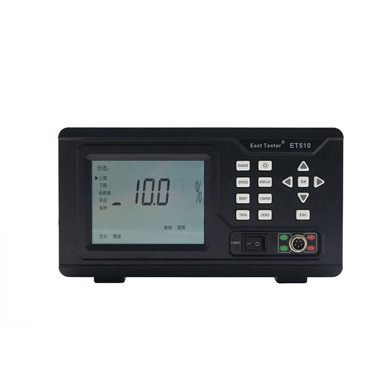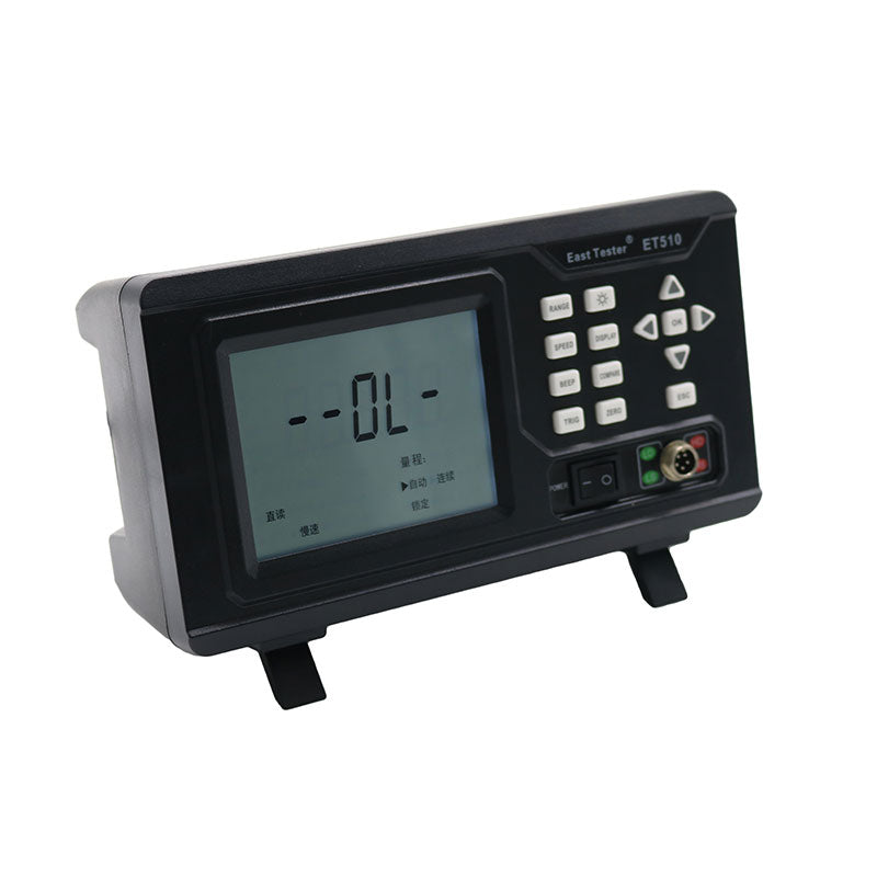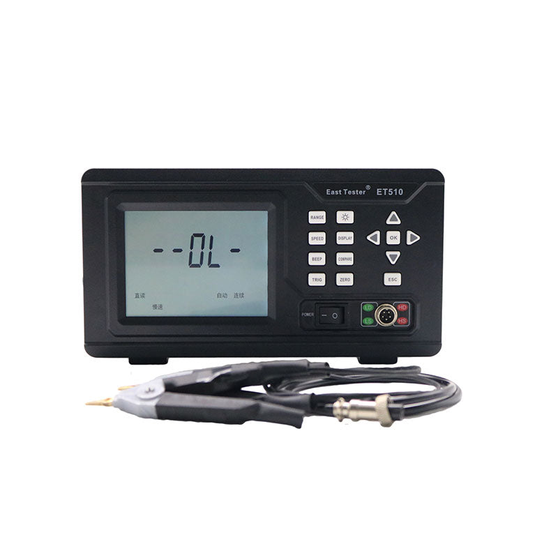 - ET51X series DC low resistance tester is suitable for measuring all kinds of DC medium and low value resistance, including transformer and other wound resistance, relay and other contact resistance, cable and other conductor resistance, connection resistance between metal components, fuse, conductive rubber and other types of DC resistance. Large-screen LCD display, clear display, measuring range of 20mΩ ~ 20kΩ (2MΩ optional), seven (nine optional) range can be adjusted, this product also comes with sorting function and sorting result output function, can be used for pipeline testing. At the same time, it also supports interface communication and control, and standard HANDLER and RS232 interface can be used for PC, PLC and other upper computer communication.
