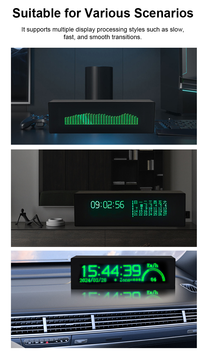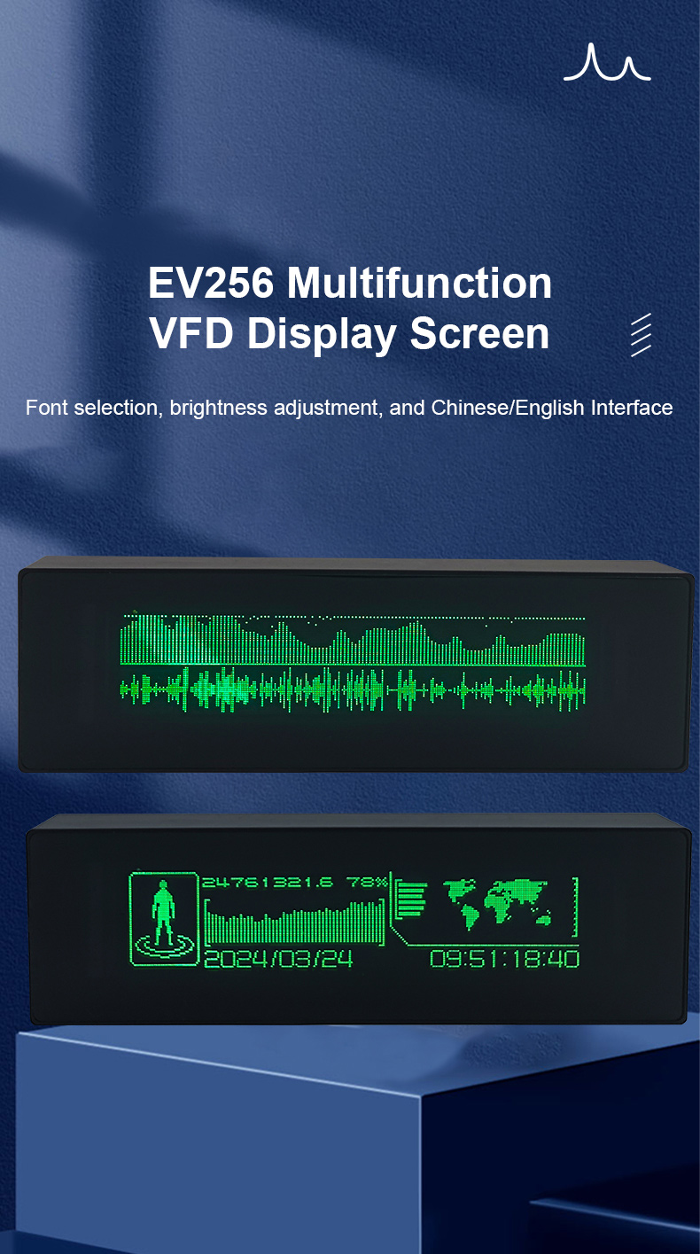 EV256 Sound/Wired-Control VFD Music Spectrum Display Black Aluminum Alloy Shell (GPS & Level Gauge)