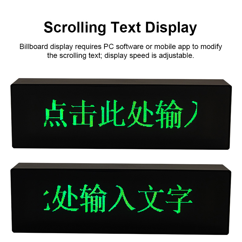 * Scrolling Text: Users can edit text content and adjust scrolling speed.