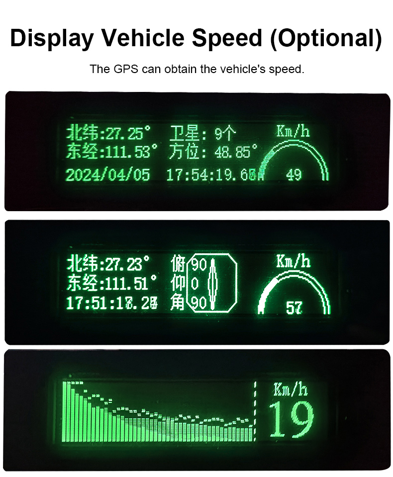 * Vehicle Speed Display: It supports both a level gauge and speed display.
