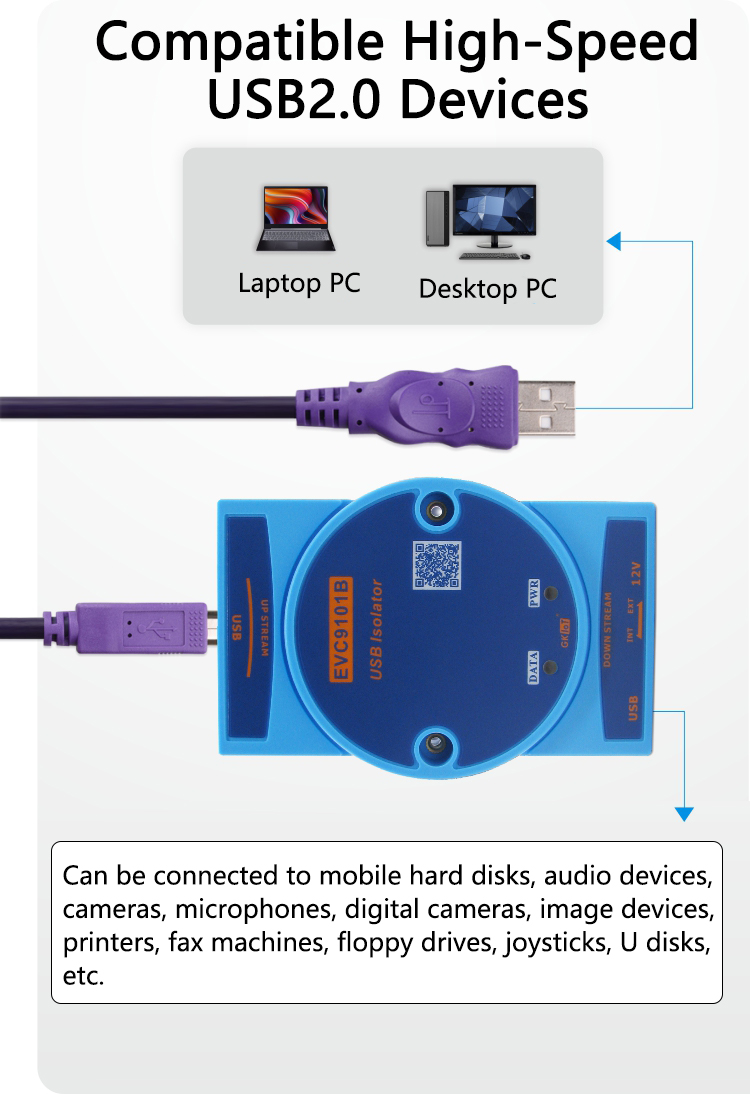 EVC9101B 480Mbps USB Isolator USB2.0 Isolator Eliminates Common Ground Current Sound of Audio Decoder