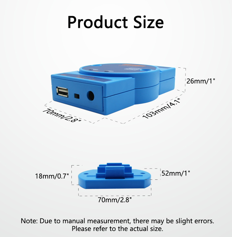 - Mechanical size: 103 x 70 x 26mm/4.1 x 2.8 x 1" (LxWxH)