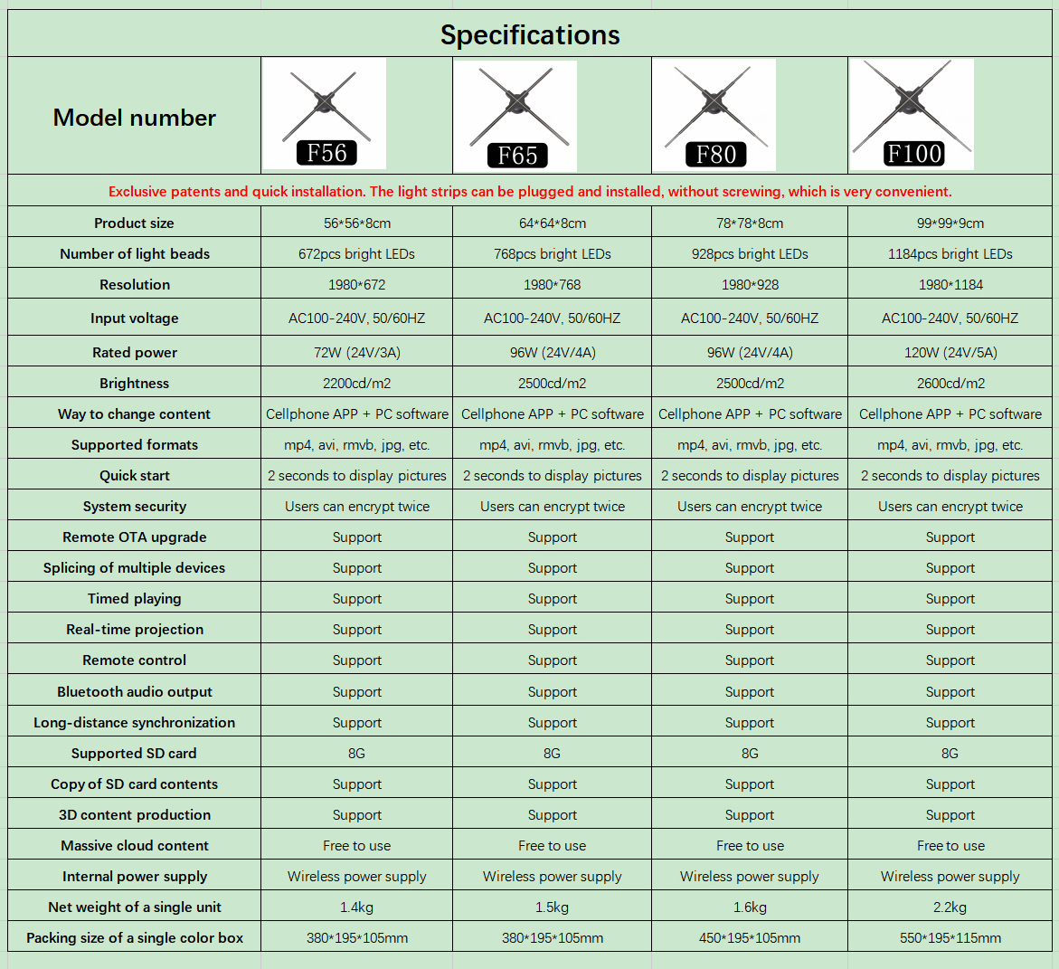 F65 3D Advertising Display 3D Hologram Fan LED Supports Wifi Bluetooth Connection & Splicing