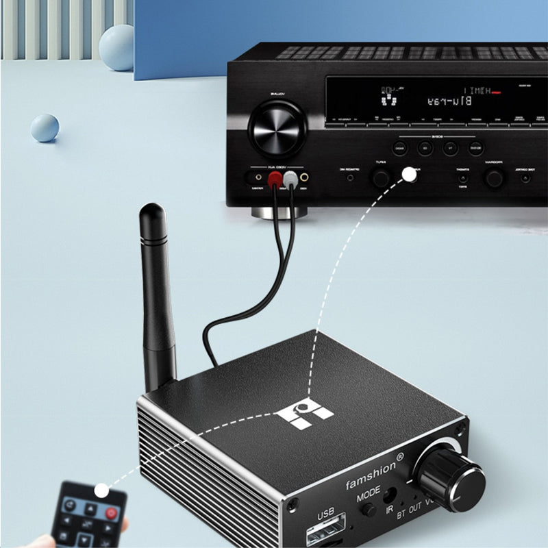 Famshion D18 Bluetooth Receiver 5.1 w/ 1 to 2 Audio Cable Remote Control for Old Speakers Power Amp