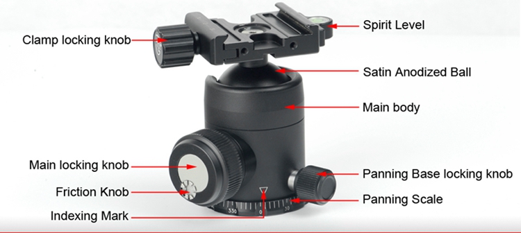 FB-36III Tripod Ball Head Panoramic Tripod Head Load Capacity 18KG with Screw Knob Clamp DDC-42i