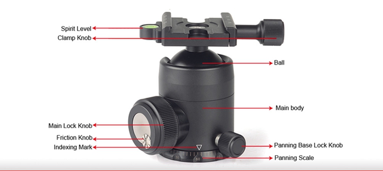 FB-44II Tripod Ball Head Panoramic Tripod Head Load Capacity 30KG with Screw Knob Clamp DDC-50L