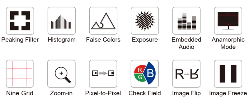 You can choose 1.3x, 2.0x, 2.0x mag, User-defined adjustment: 1.20x~2.00x. Built-in selection of no squeeze, 1.3X or 2.0X allows you to use anamorphic lenses or adapters and see the image unsqueezed, even if your camera does not de-squeeze in camera. A 2.0X mag mode, magnifies the center of your image so you can check the focus of your scaled image.