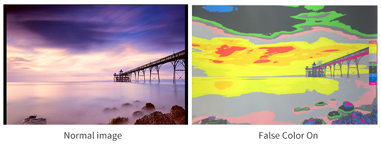 The False Color filter is used to aid in the setting of camera exposure. As the camera Iris is adjusted, elements of the image will change color based on the luminance or brightness values. This enables proper exposure to be achieved without the use of costly, complicated external test equipment.