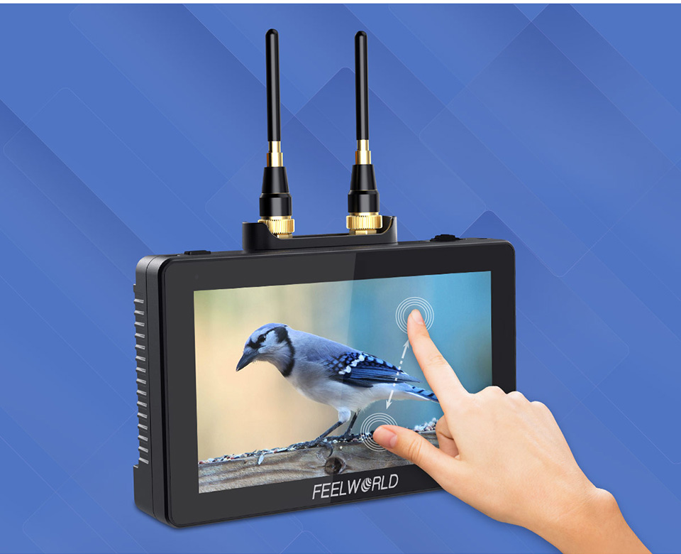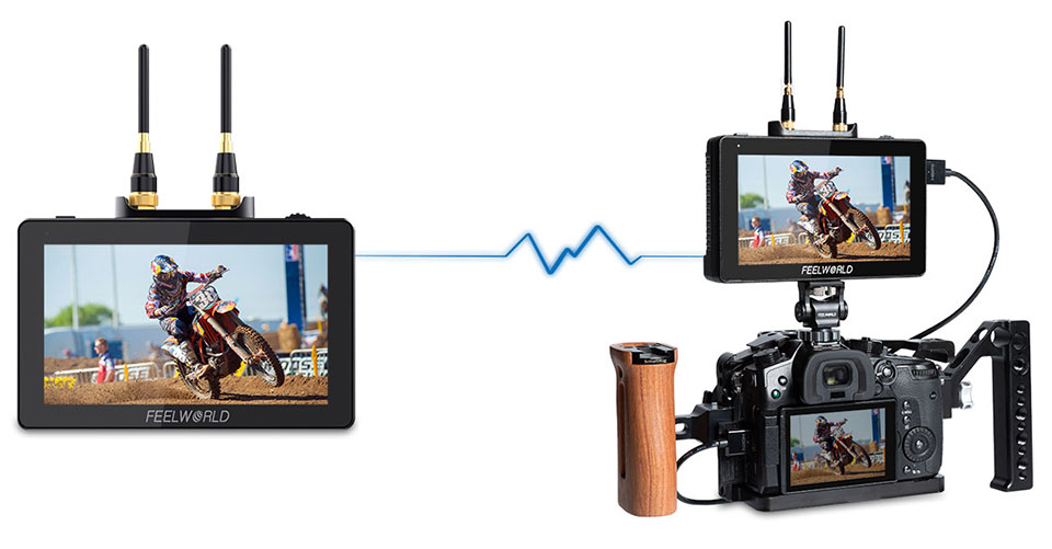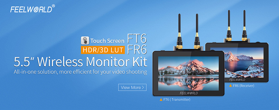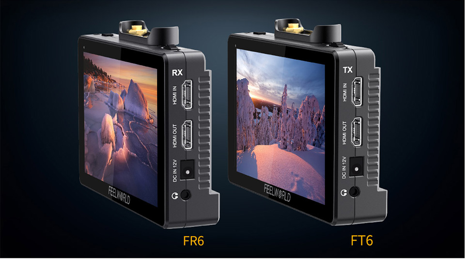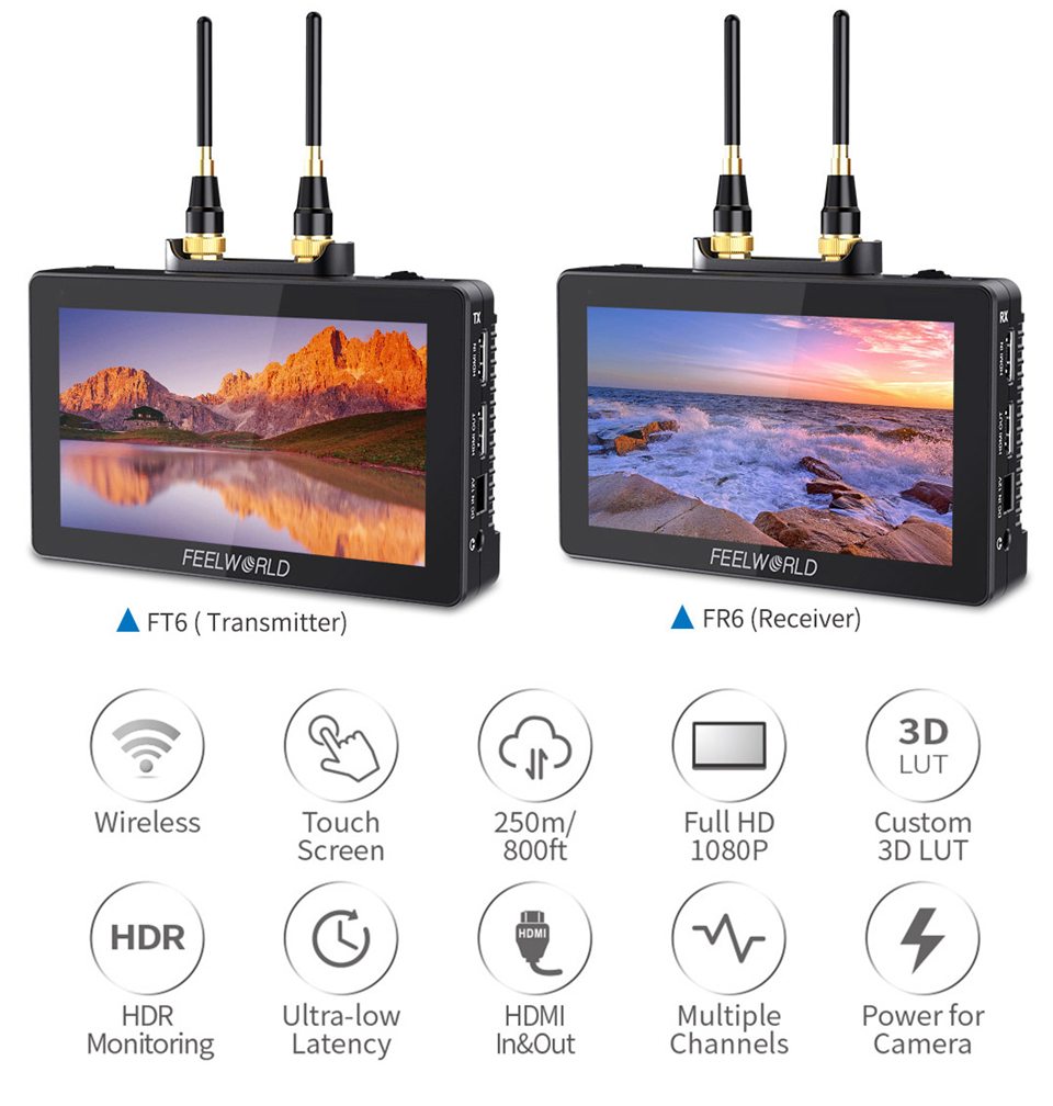 Combining a wireless video transmission and high-quality HD monitor, the FEELWORLD FT6, FR6 wireless monitor to create ultra light, cable-free monitoring kit that gives you complete mobility on set. Using 2*2dBi antenna technology and H.264 encoding and decoding technology for professional image processing, clearer image and lower latency. The FR6 can receive uncompressed HD wireless signals from FT6 transmitter.