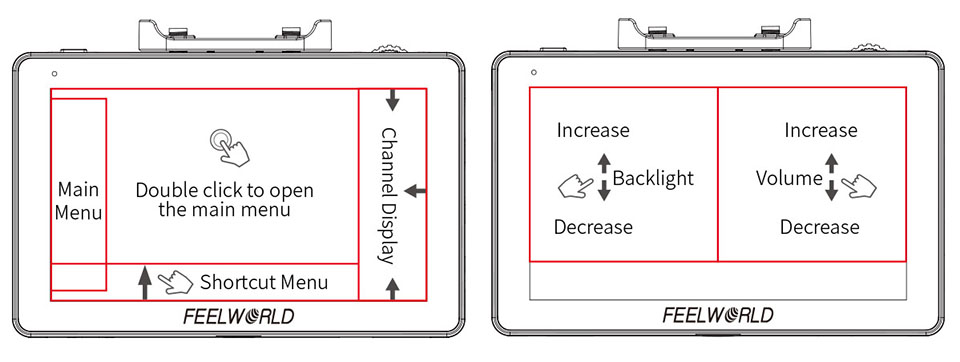 - When the monitor and touch are both on, continuously click the screen twice to enter the main menu.
