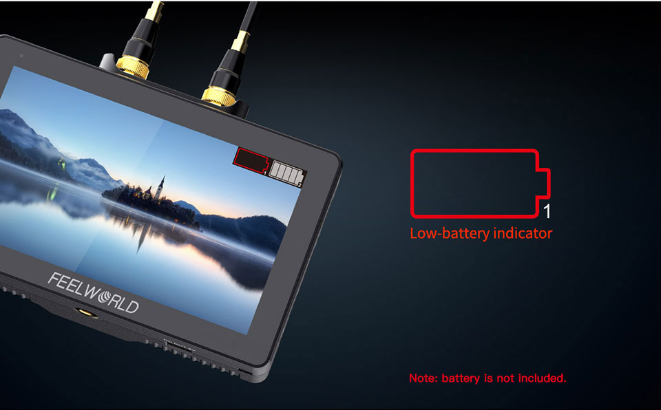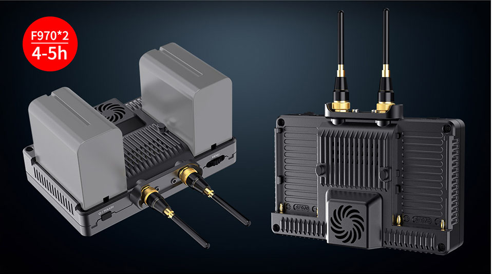 - In addition to the 12V universal power supply; FT6, FR6 also have dual battery slots in the back. You get 2 rear battery slots for installing Sony L Series batteries, so you have enough power for the screens. Plus with 2 battery slots, you can change batteries without interrupting monitoring, just need to double-tap the battery icon on the upper right corner of the monitor, after about 3 seconds switch to the other battery. The monitor install one F970 battery (6600mah) last for about 2 hours, and install two F970 batteries last for about 4-5 hours. You can choose install 1 or 2 battery base on your need.
