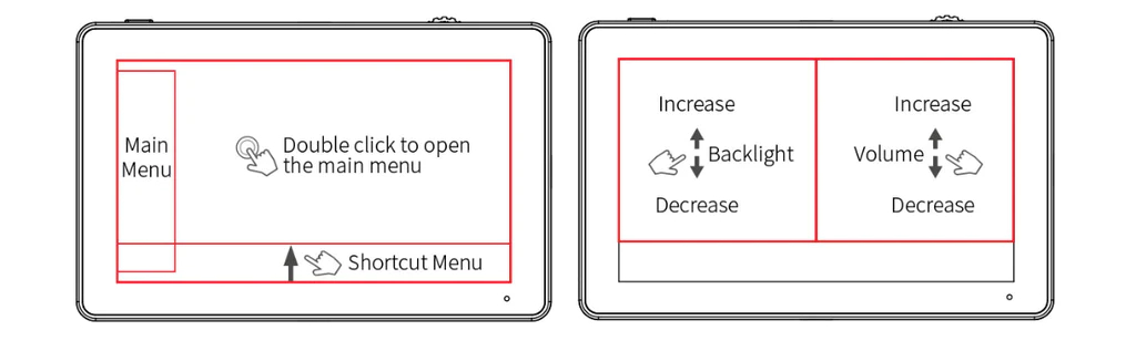 3. On the left side of the screen (1/2 split screen), you can directly adjust the brightness of the screen backlight; on the right side of the screen (1/2 split screen), you can directly adjust the volume.