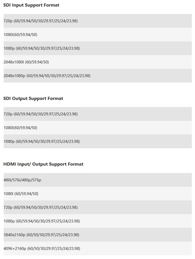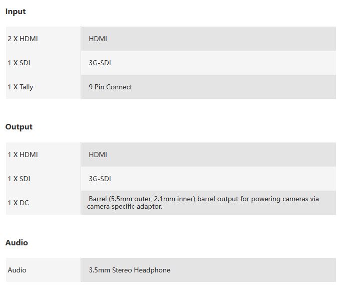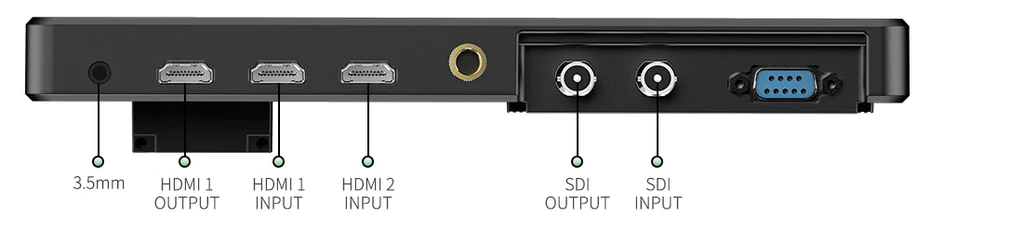 - SDI perfect for the movie cameras, dual HDMI signal inputs are easily matched with SLR camera and one output, support up to 4K at 60Hz, which is transmitting without loss and the screen is more smooth and clear. And provides 3.5mm headphone jack to monitor audio.
